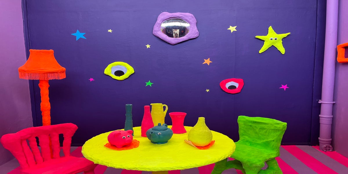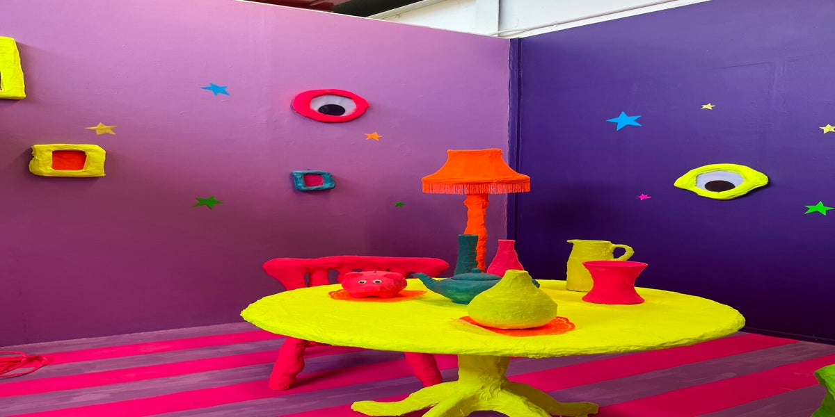 My artistic practice is a dive into the realm of surrealist euphoria, where I reconstruct personal nostalgia though vibrant, immersive environments. By creating hyper-saturated dioramas and installations, adorned with warped furniture and personified walls, my practice functions as an active vessel for preserving memories. These pieces are not mere recreations, but portals designed to transport viewers into a physical manifestation of my own nostalgic experiences.